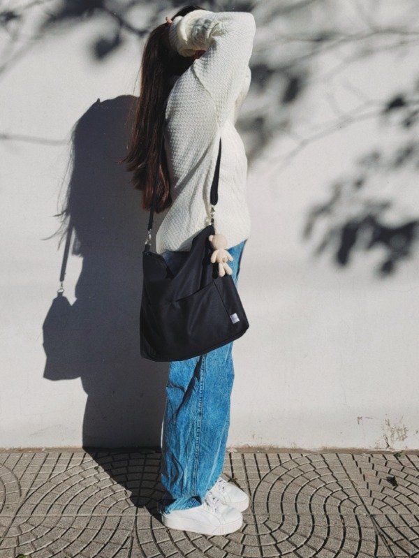 3) Una tira (no regulable) para llevar cruzada o colgada al hombro (no queda muy baja, para que no sea incómoda al caminar ni que pueda lastimarte el peso. Queda a la cintura. Pero podemos hacerla a medida si lo necesitas y sin cargo) Mide 88 cm aproximadamente. Repito: En búsqueda de que ningunx quede sin su morral, podemos hacerla a medida sin cargo adicional.